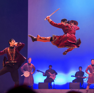 The dangerous dances of Georgian men astonish with dizzying choreography, the synchronicity of incredible high-speed rotations in the air and on the ground, jumps that defy the laws of gravity and fill the stage with the most powerful energy. You will see sparks flying from the sabers in the hands of the dancers soar through the air.